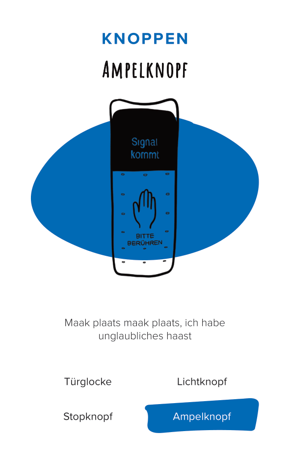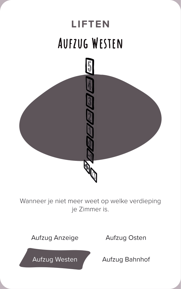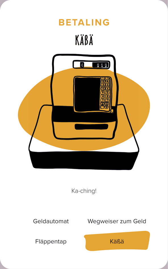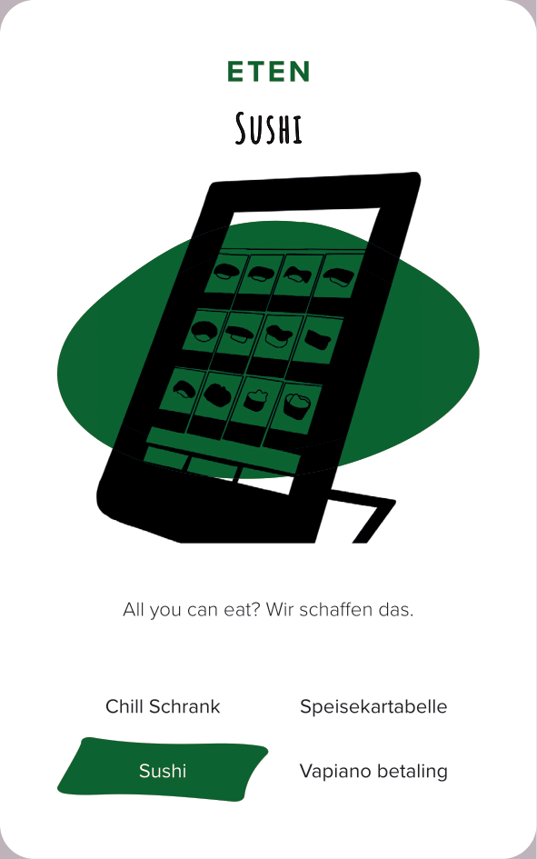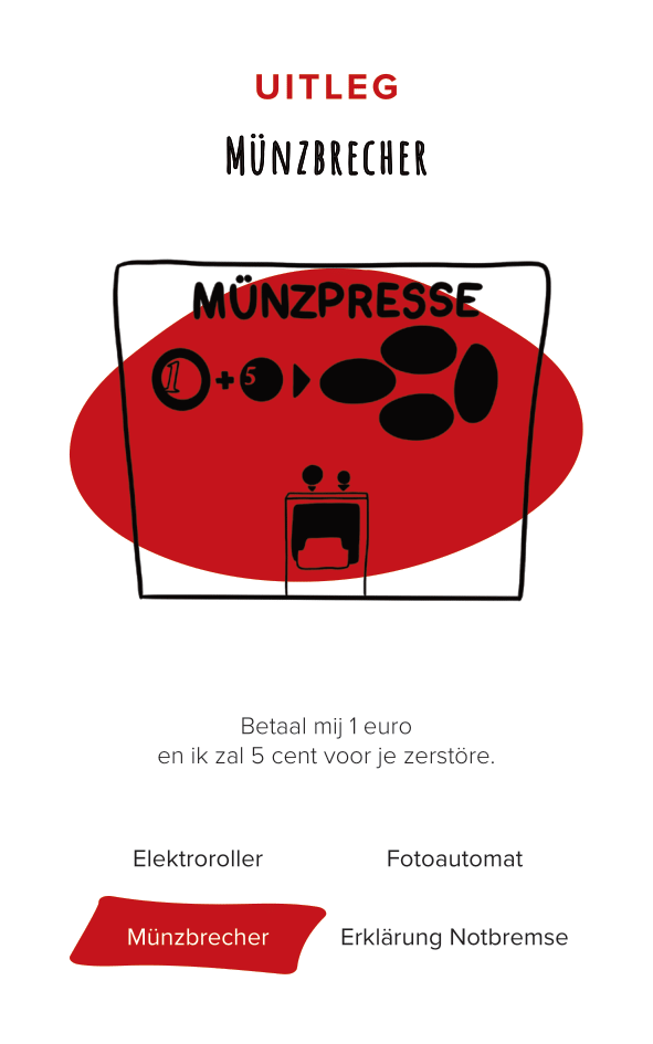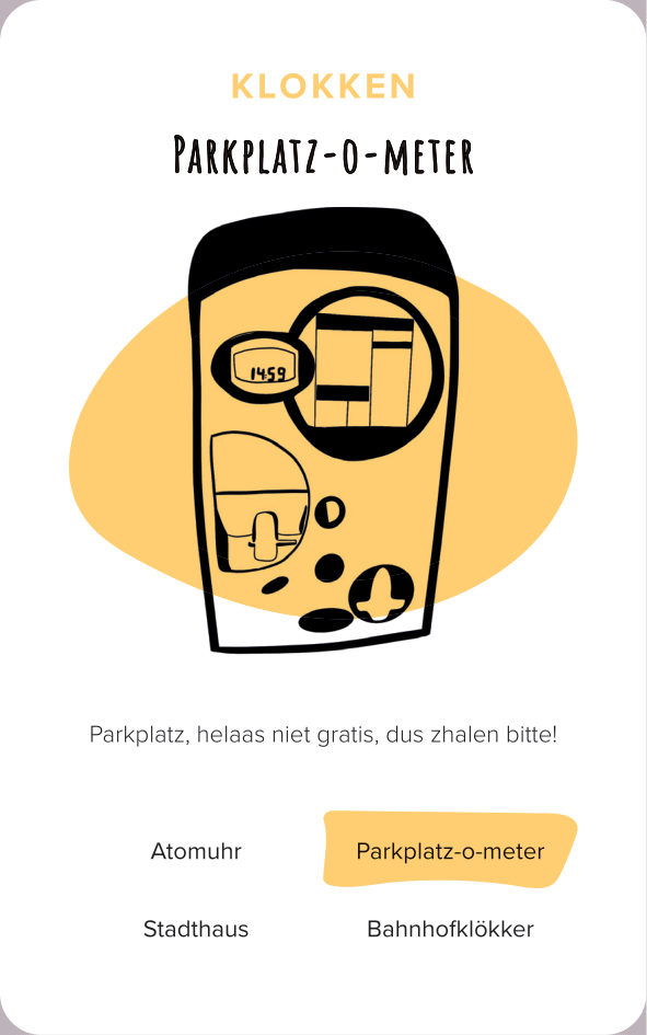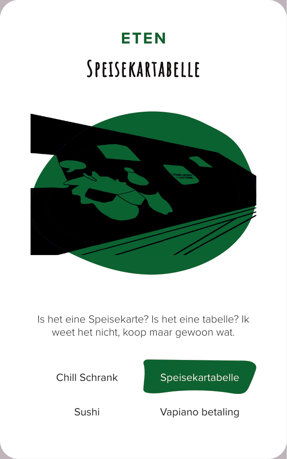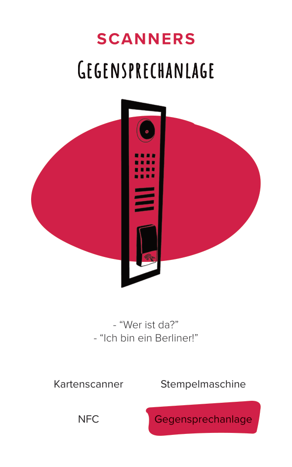 The deck of cards consists of 52 cards (and one explanation card). All the cards are categorized by color and interface. The names of the cards are made-up words that we thought were funny, providing a German-esque description of the interface.