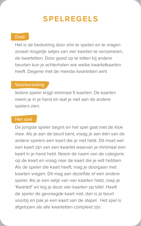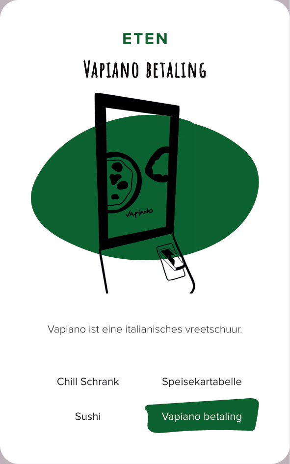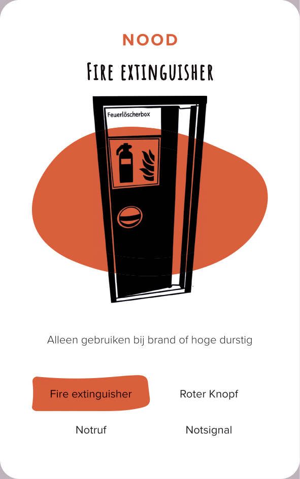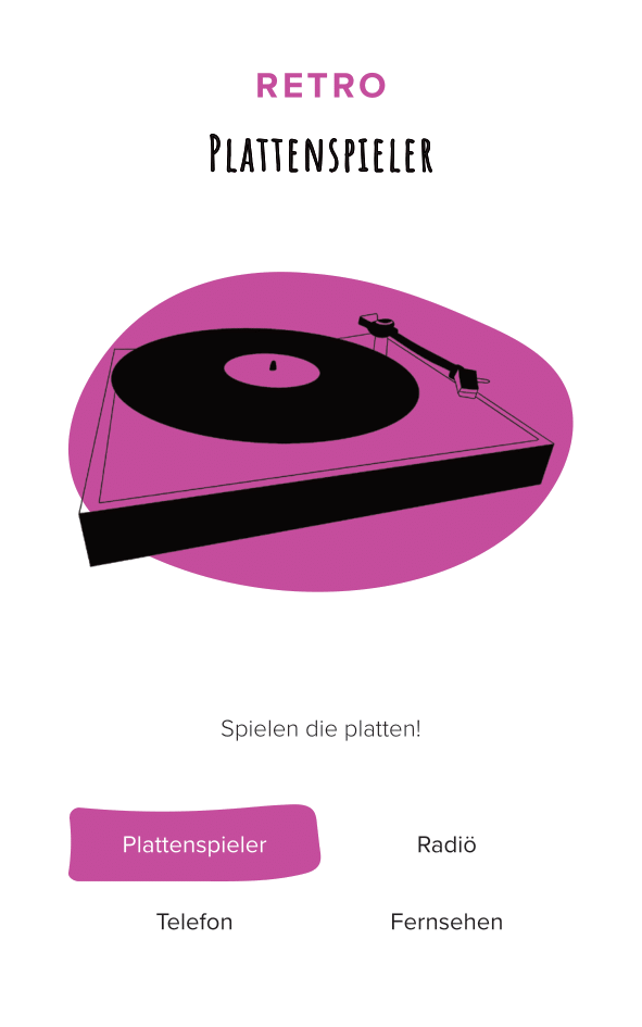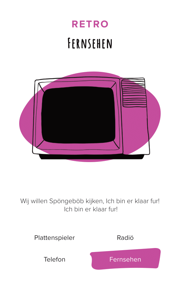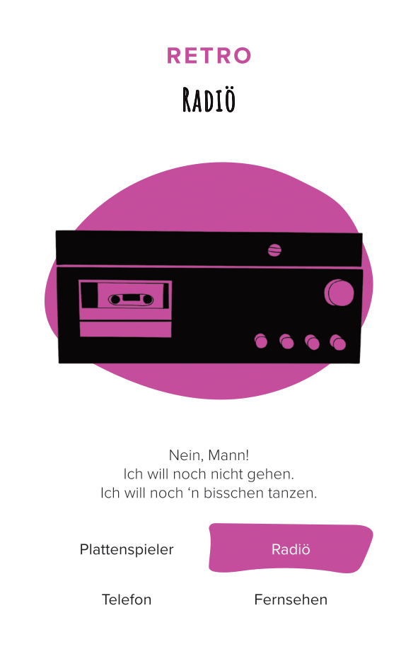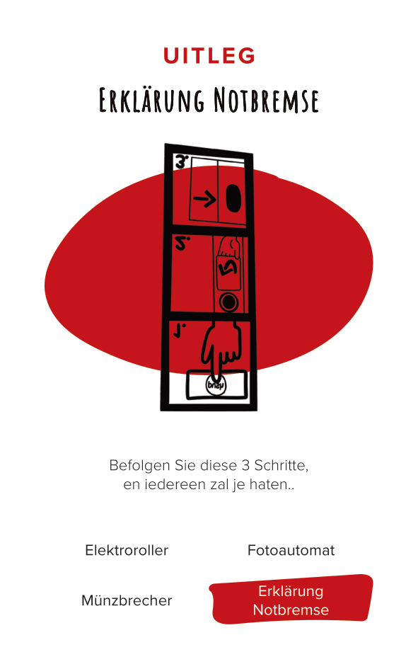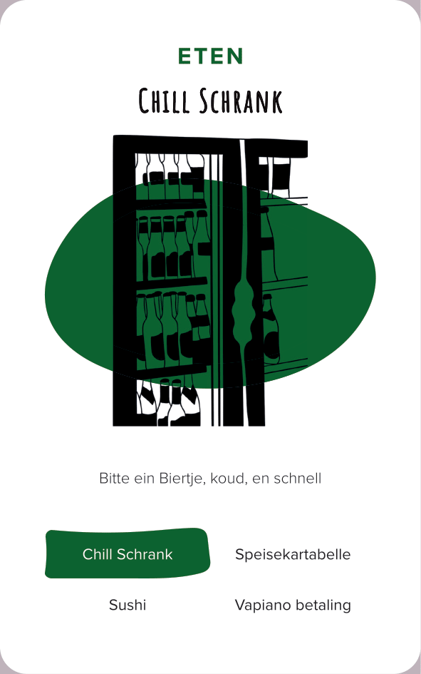 The deck of cards consists of 52 cards (and one explanation card). All the cards are categorized by color and interface. The names of the cards are made-up words that we thought were funny, providing a German-esque description of the interface.