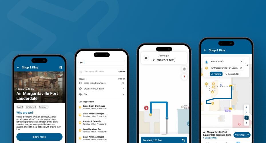 Sometimes, the projects had challenging parts. The one for the USA's airport was tough, but it taught me to find smart solutions and solve problems. Getting through these tough times made me feel proud and more experienced. You often don't think about wayfinding in airports, but once you take a dive into the UX of this issue, you realize it is a lot harder to find a UX solution for an airport with multiple floors and stay in the current branding. Luckily, with some help from the team, I managed to find a good solution.