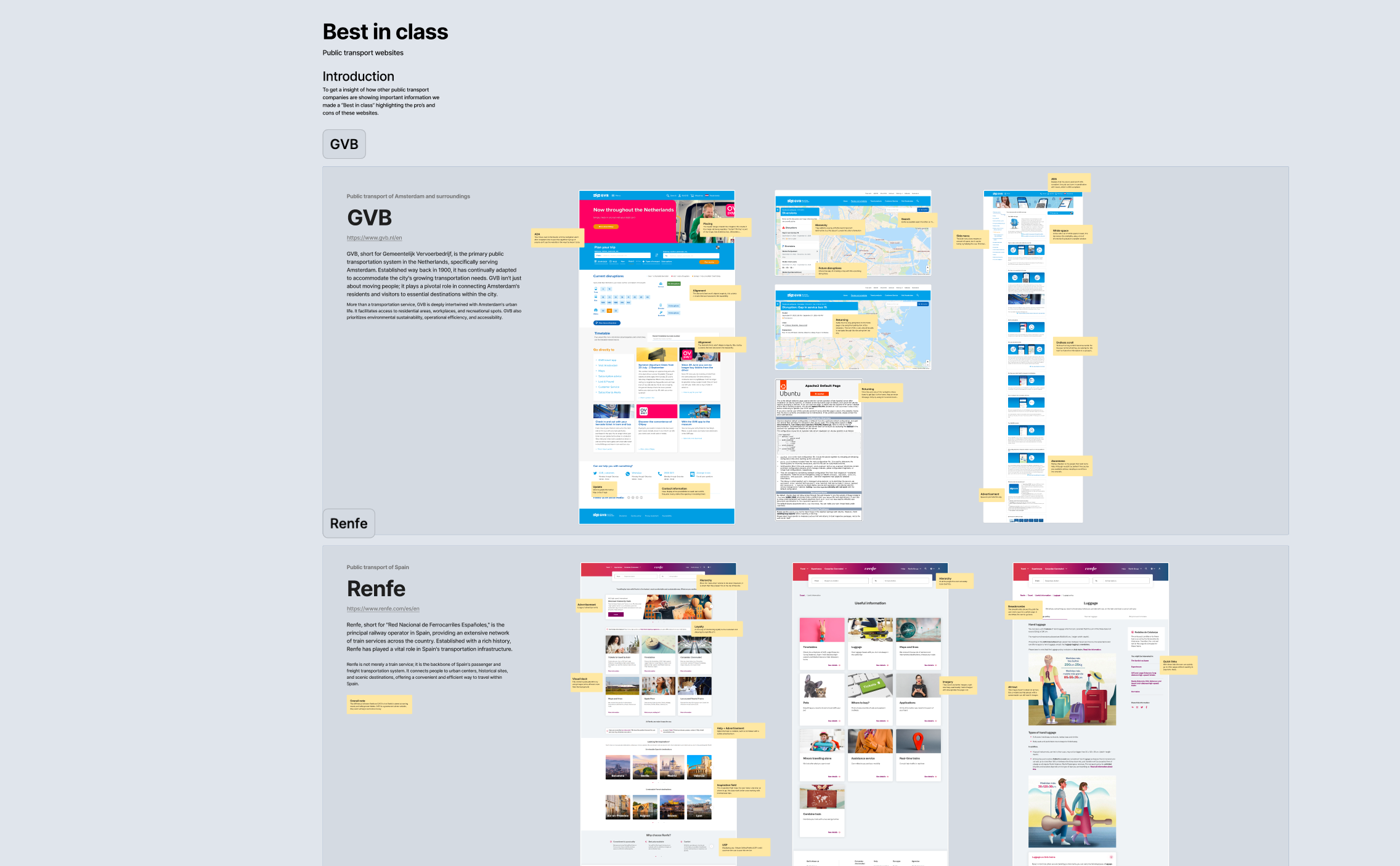 To gather inspiration for both the designs and the website architecture, I conducted desk research on similar websites. This exploration provided valuable insights into how public transport websites present information. Unfortunately, it also revealed a downside, most of these websites weren't even ADA compliant.